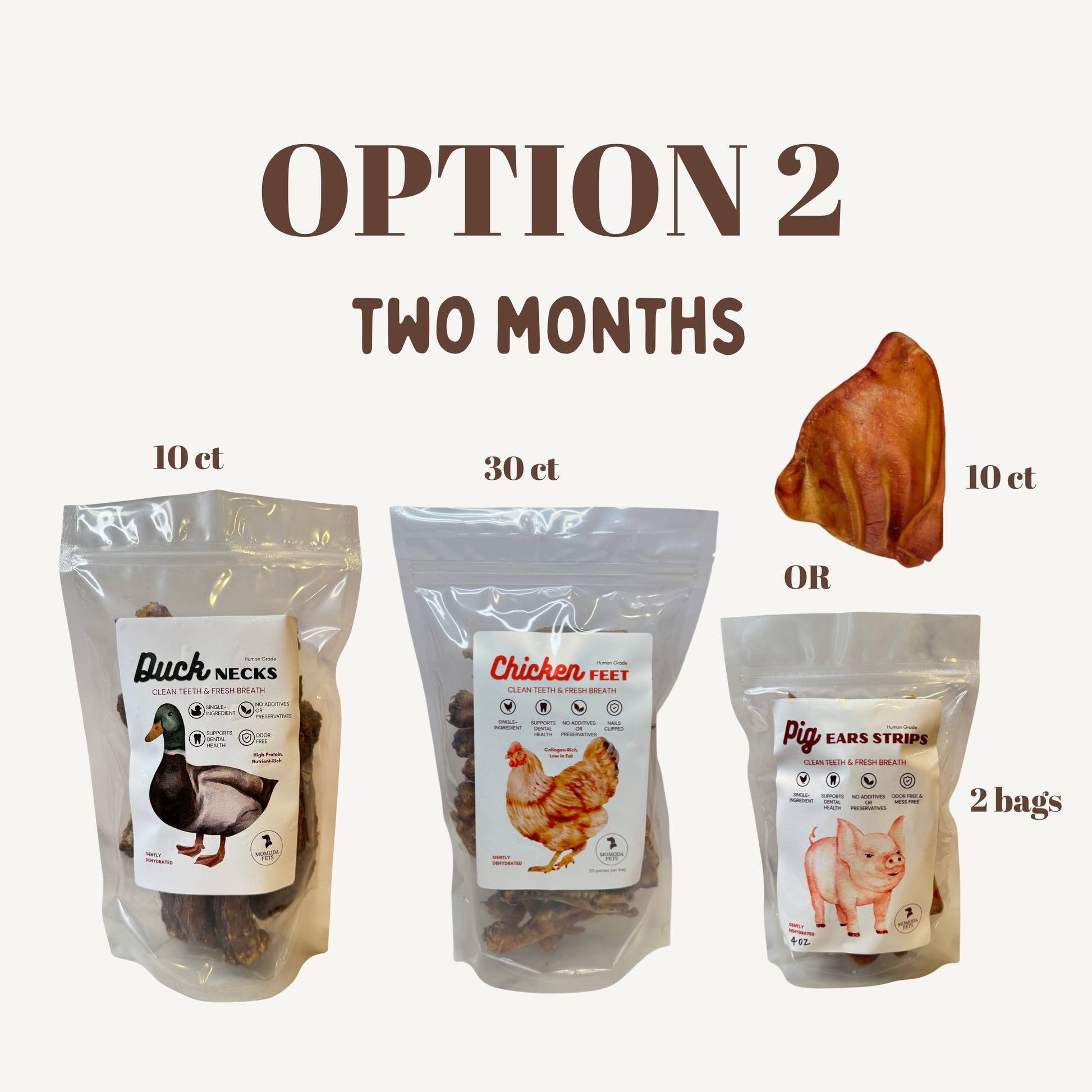 - Pig Ears / Strips: Longer-lasting chew for tougher buildup
